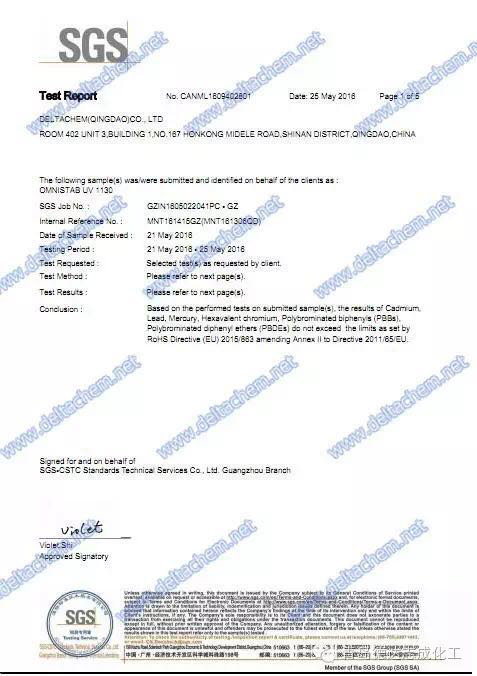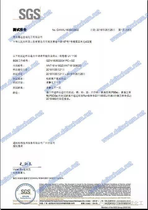 欧稳德紫外线吸收剂UV1130是我司的强势产品之一, 欧稳德TM紫外线吸收剂UV1130早在2016年5月25日就正式通过了SGS的ROHS(2011/65/EU)检测。表明我们的产品UV1130已具备了一张畅行全球的“通行证”。
