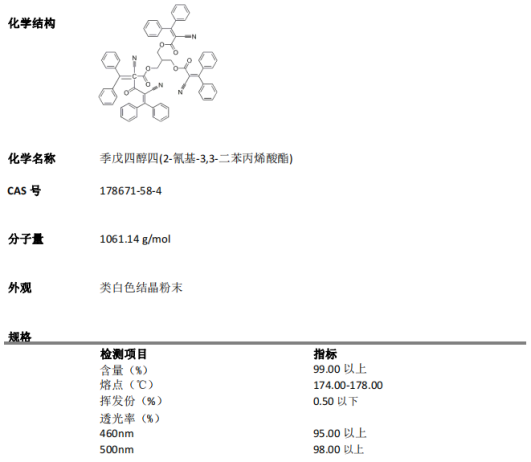 欧稳德 UV3030安全性较高,被FDA 认证,可用于食品间接接触材料。