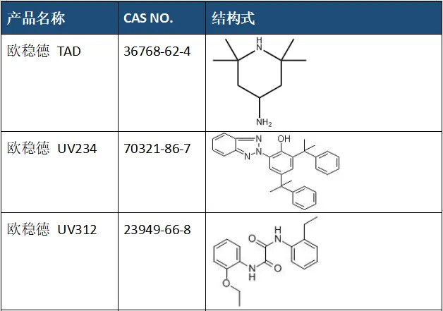 除尼龙工程塑料外,我司在其他汽车内外饰件材料改性方面也有丰富合作经验,可针对不同基材提供配套助剂改性方案,如PC, ABS, PVC等复合材料。欲了解更多欧稳德® 紫外线吸收剂、光稳定剂、抗氧剂产品信息,欢迎随时致电咨询。