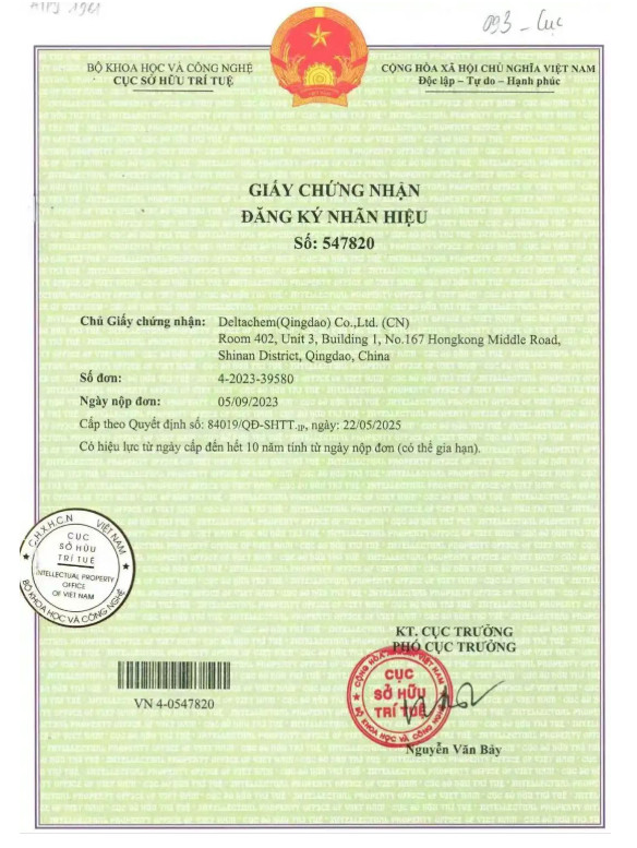 越南商标注册成功是德达特化集团品牌深耕的新篇章。未来,我司将以此为枢纽,加速推进全球网络建设,推动“欧稳德 OMNISTAB”走向更广阔的国际市场。德达特化集团也将始终怀揣赤诚之心,以专业的服务体系与精益求精的优质产品,与全球合作伙伴携手同行!